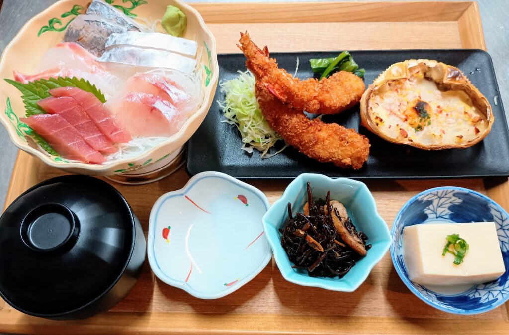 ☆Aセット 2800円 ・・・ミニ刺身、卵豆腐、お新香、みそ汁ご飯セット